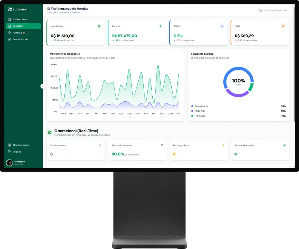 Utilize a inteligência de dados para escalar o que funciona e cortar gastos ruins. Seu time comercial recebe apenas oportunidades qualificadas, prontas para o fechamento.